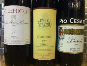 I’m thinking that with the very hot autumn, the ’97 vintage is going to show very ripe fruit and perhaps less acidity fior which Nebbiolo is so keenly prized. Based on the descriptions, I’d go for the Paolo Scavino Carobric. The Pio Cesare seems the most classical of the lot, with the most grace and finesse and potential for development, with finer tannins and acidity. The Clerico Ciabot Mentin Ginestra is on the opposite end – that power would probably benefit from aging to settle down and balance out – though if the fruit is overripe, it may not matter much. Descriptors like “massive” and “monster” make me shift uncomfortably ;)