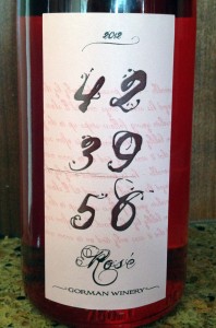 2012 Gorman 42-39-56 – The name of this wine is almost worth the price of admission in and of itself (in case you don’t know, it is a reference to the classic AD/DC song Whole Lotta Rosie). 13.5% ABV. Made from Syrah and Cabernet. Strawberries, raspberries and watermelon leap from the glass. Bright acidity. A Rosé wine for a red wine drinker and a wine that will pair perfectly with a summer salad. My rating: 90 points. $15 at the winery.